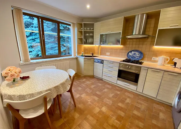 ستجد منطقة المطبخ الصغير المجهز في هذه الشقة. يستغرق الطريق 10 دقيقة بالسيارة من شقة Viletta Natali بمساحة 55 مترًا مربعًا إلى مطار أوديسا الدولي. يمكنك الاستمتاع بالشرفة الّتي تطلّ على الحديقة.
